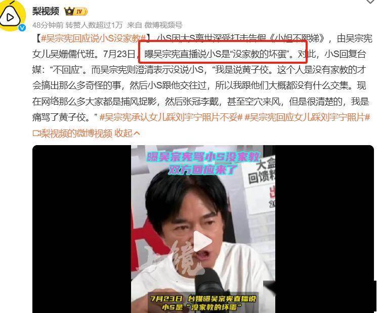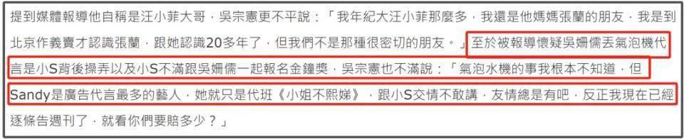 吴宗宪还回应了另外一部分谣言,表示自己女儿不屑于和小S争奖,也不会和小S抢节目,他要告造谣的媒体。