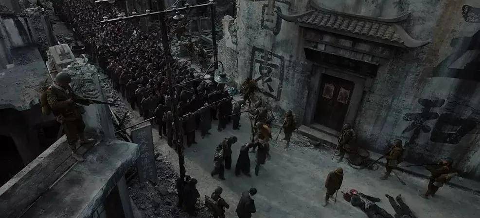 影片中,王广海的妻儿混在人群之中,被日军集体枪杀。