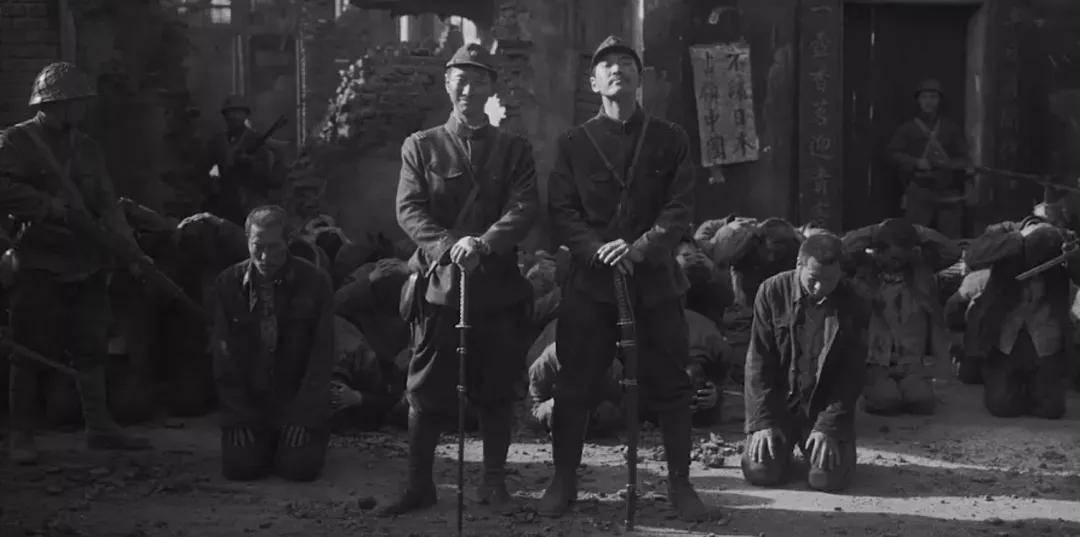 影片中,有两个手持利剑的日本军官,让摄影师为他们拍了一张笑容狰狞的合照。