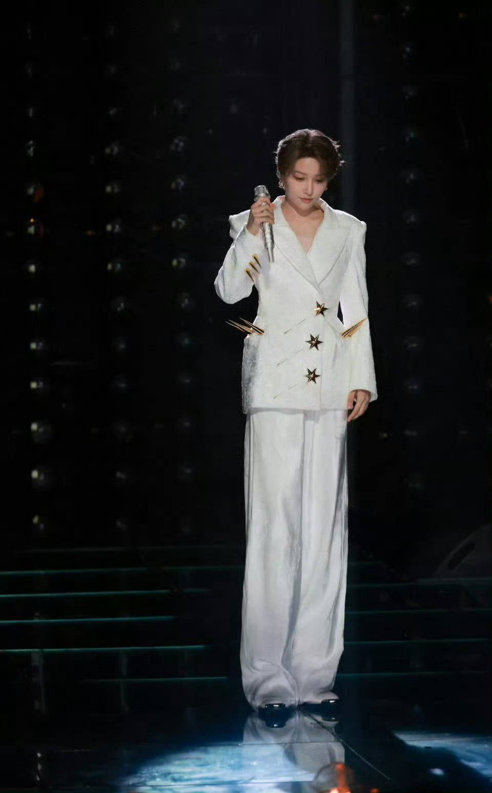 刘雨昕穿白色套装。