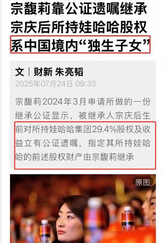 而父亲留给她的遗嘱,上面清晰地写着,海外资产都归女儿宗馥莉继承,就意味着,宗馥莉是唯一合法的继承人。