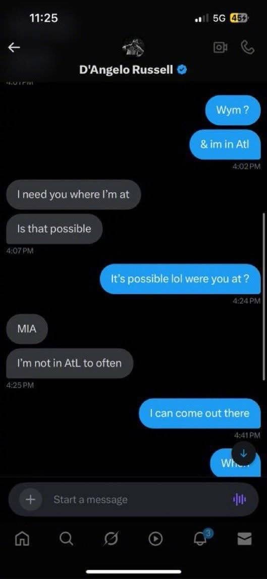 截图显示,2024年6月,拉塞尔曾主动联系Jaw Morant,询问她是否能从亚特兰大飞往迈阿密见面。随后,拉塞尔提出转账1700美元用于购买机票,并确认见面地点,还特意叮嘱女方“不要改变计划”。聊天记录中,女方直指拉塞尔“欺骗女友”,暗示他隐瞒了这段关系。