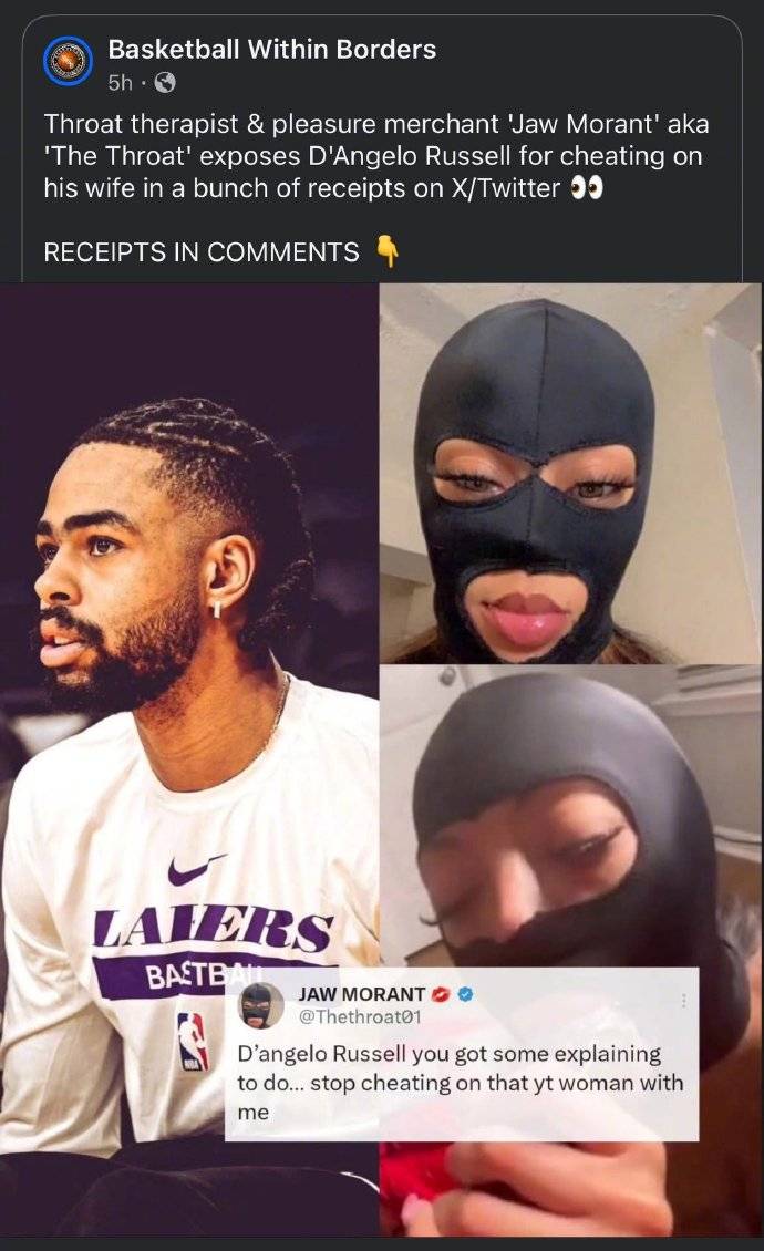 讽刺的是,拉塞尔早在2016年就曾因录音曝光队友尼克·杨(Nick Young)的出轨行为,导致后者与未婚妻分手。如今自己陷入类似风波,网友纷纷调侃:“天道好轮回,苍天饶过谁?”尼克·杨更是直接嘲讽:“告密者没好下场”,并称Jaw Morant是“GOAT(史上最佳)”。