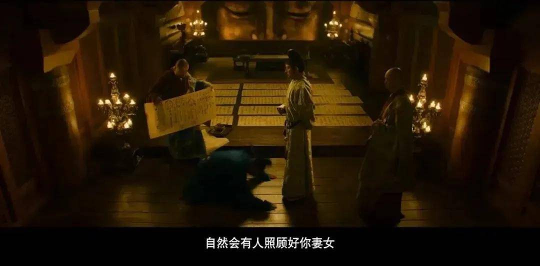但在电影里面,杨国忠的府邸并未出现,他每次接见李善德都是在寺庙里,这个设定充满了讽刺。