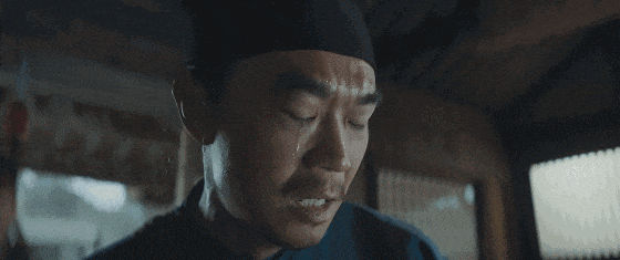 天上地下瞬间反转,命运仿佛开了一个荒诞的玩笑,李善德的泪水,充满了对这种荒谬现实的震惊与无奈。