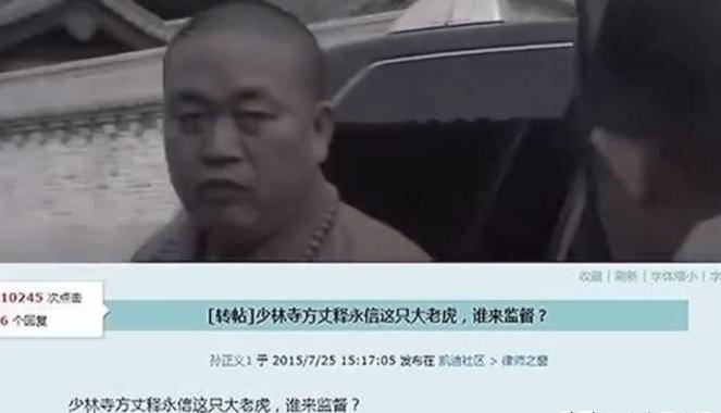 其实释永信的争议由来已久,早在2015年,网络上就曾出现过一篇名为《少林寺方丈释永信这只大老虎,谁来监督》的网帖,一时间引发轩然大波。