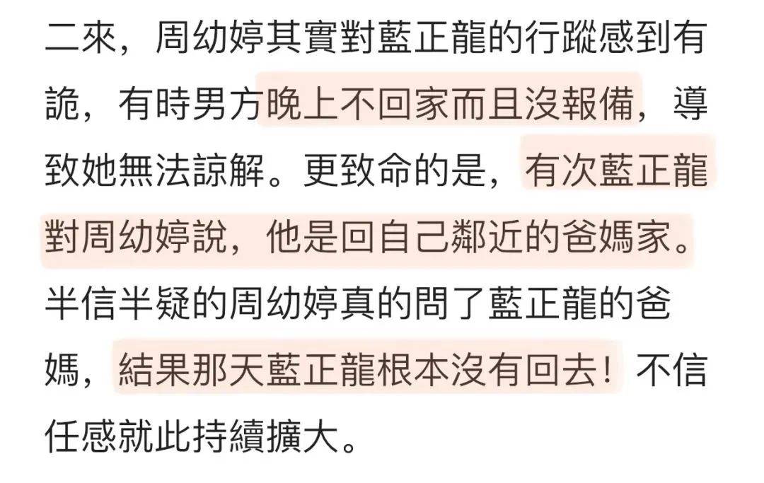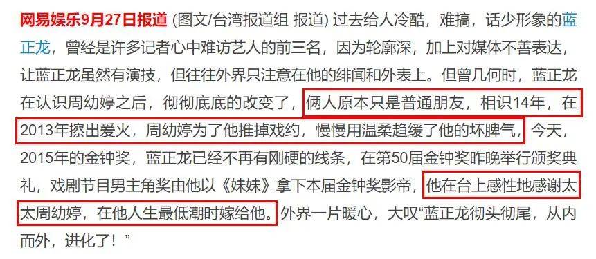 《康熙》老粉们都知道,蓝正龙天生孤僻、性格冲动,周幼婷在她低潮的时候出现,为他生儿育女,放弃自己的事业照顾他。
