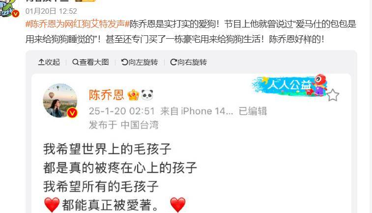 不过,潘宏事件至今没有一个准确的定论,也有网友认为陈乔恩并没有太大的过错,她一直都是爱狗人士,经常为动物发声。