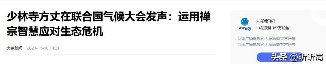 少林寺方丈在联合国气候大会发声:运用禅宗智慧应对生态危机 大象新闻 2024-11-16