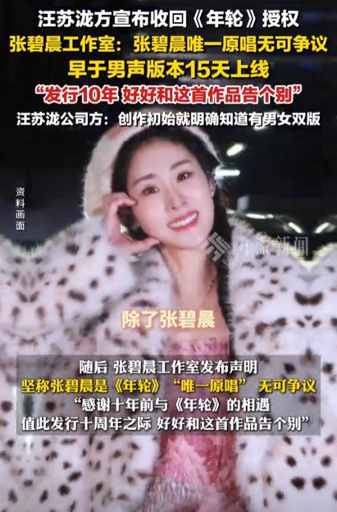 所以张碧晨确实算是《年轮》的原唱,但是这却不代表着她可以取代创作者汪苏泷的位置。