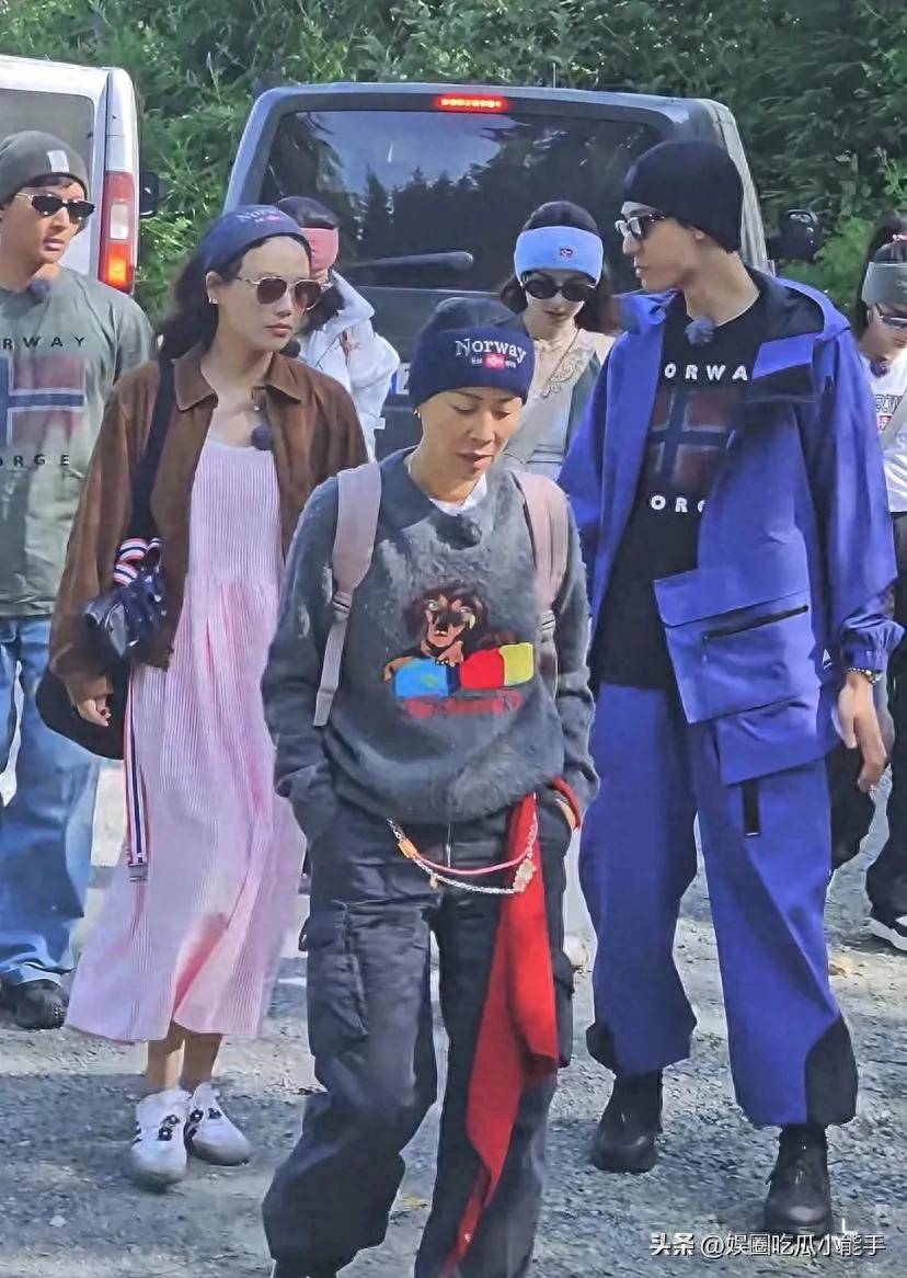 姐姐那英依旧气场十足,穿着灰色毛衣和时尚工装裤,腰间还别着一条鲜红的丝巾,显得格外亮眼。紧随其后的是龚俊,他身穿一套帅气的蓝色登山服,阳光帅气,仿佛随时都能徒步登山。他一边走路一边和马思纯热烈地交谈,似乎两人之间总有聊不完的话题,镜头捕捉下的他们总是一脸开心,笑声不断。