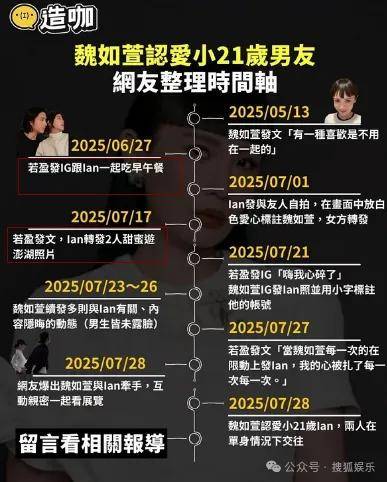 根据网友总结的时间线,6月27号的时候,lan和若盈还在甜甜蜜蜜一起吃早餐,而魏如萱5月就有了青春疼痛文学发言。