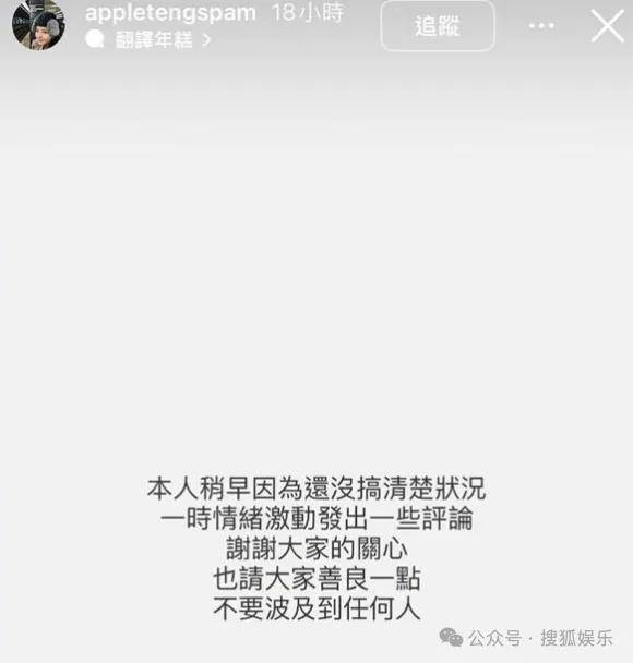 事情闹大后,若盈很快删除了贴文,并解释称:“本人稍早因为还没搞清楚状况,一时情绪激动发出一些评论,谢谢大家的关心,也请大家善良一点,不要波及到任何人。”