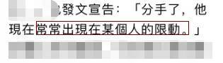 再之后,她又发文称,“分手了,他现在常常出现在某个人的限动。”