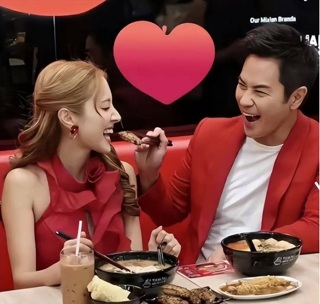 当日他们夫妻不仅穿了红色的情侣装,还不忘放闪,他们时而甜蜜对笑,时而互相喂食,真是疯狂撒狗粮,虐死单身狗。