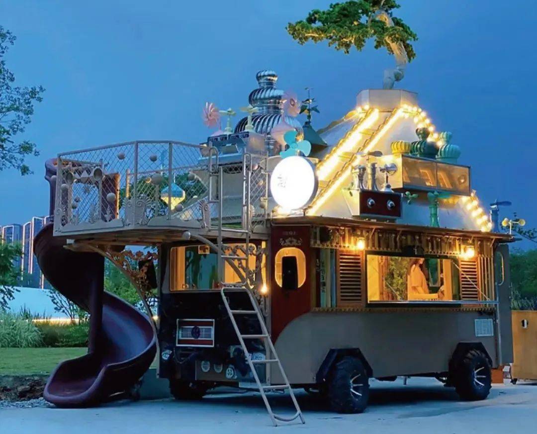 生锈的卡车被改造成移动城堡