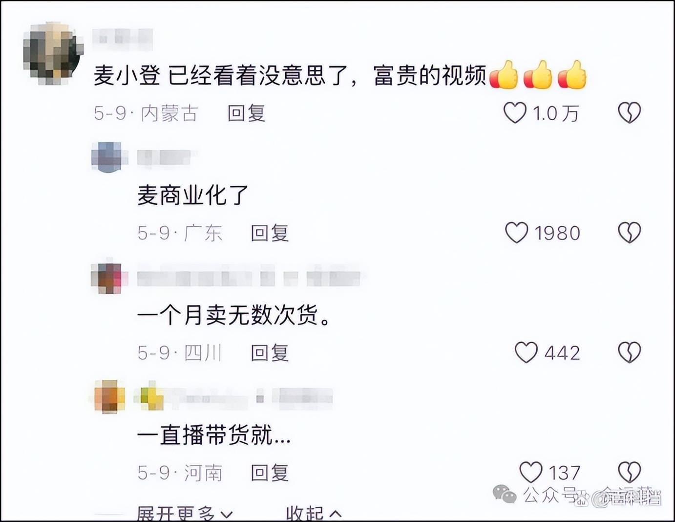 有人调侃:“麦小登现在都快成‘卖货登’了。”