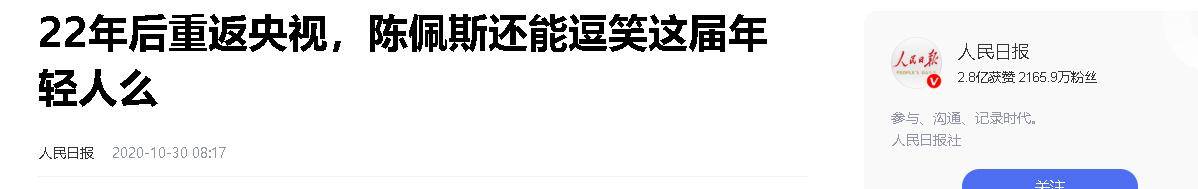 人民日报——22年后重返央视,陈佩斯还能逗笑这届年轻人么2020-10-30