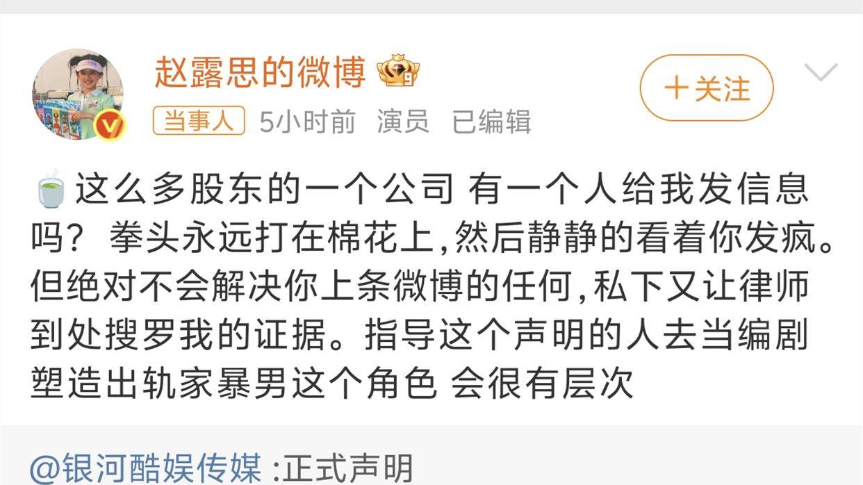 其实早在当天下午,赵露思发的第一条动态是@了公司官方账号,有消息称赵露思原本是和公司谈好了,要在下午发布解约通知。