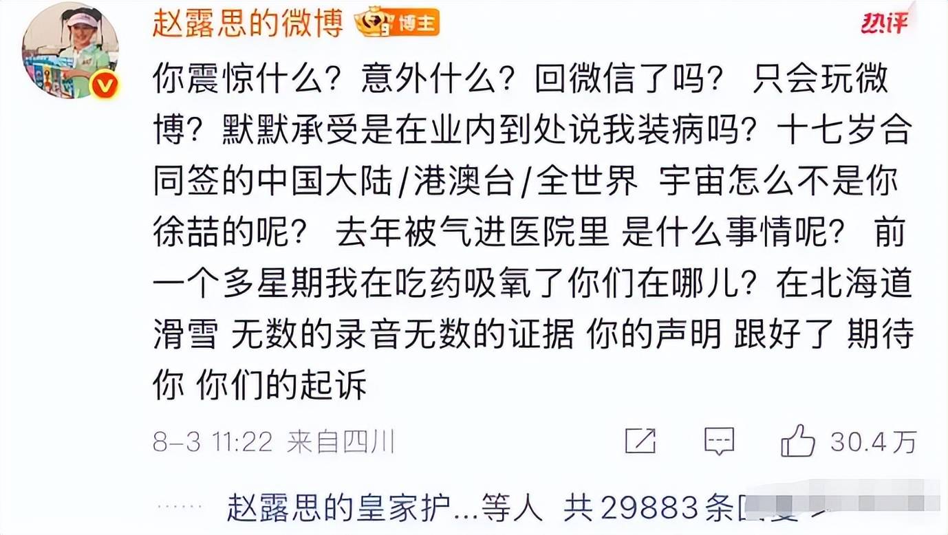 眼看对方如此不讲情面,无路可退的赵露思只能在网上对自己进行维权,她在直播间公然表示,大不了之后开个面馆!