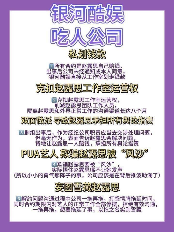 但对方失约了,赵露思这才忍不下去开撕,而赵露思和银河酷娱公司之间的矛盾早就存在,不少粉丝也早就猜到赵露思会和公司解约。