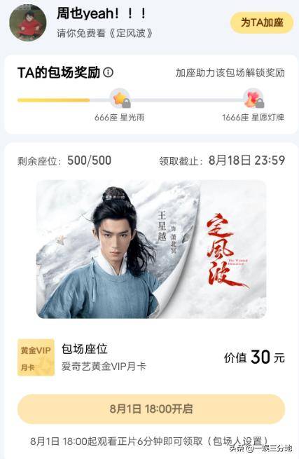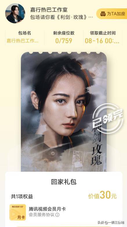 每次新剧开播之前,总会有一个云包场活动,是由主演、主创、或者主演的好朋友们免费赠送一些视频平台会员。