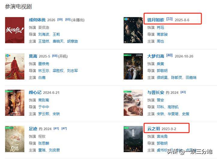 和她合作的男主角丞磊,虽然2023年有一个出圈角色“宫尚角”,但这几年也是一部主角剧都没有。