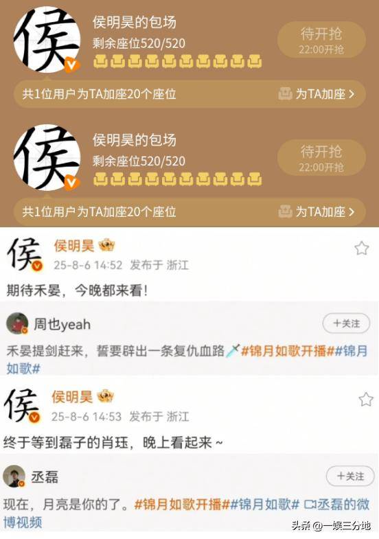 丞磊客串过侯明昊主演的《大梦归离》,所以这次新剧开播,侯明昊也是包了两份520。
