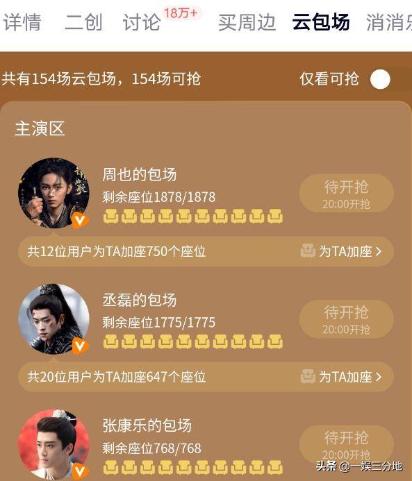 除了男主角之外,只有这部剧中周也的妈妈和舅舅扮演者,也都分别包场了200,支持自家人。