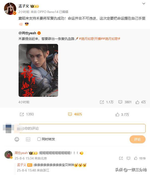 虽然周也、丞磊本身的热度都不高,但是得益于他们朋友的宣传助力,也是让更多人知道了新剧开播的消息。