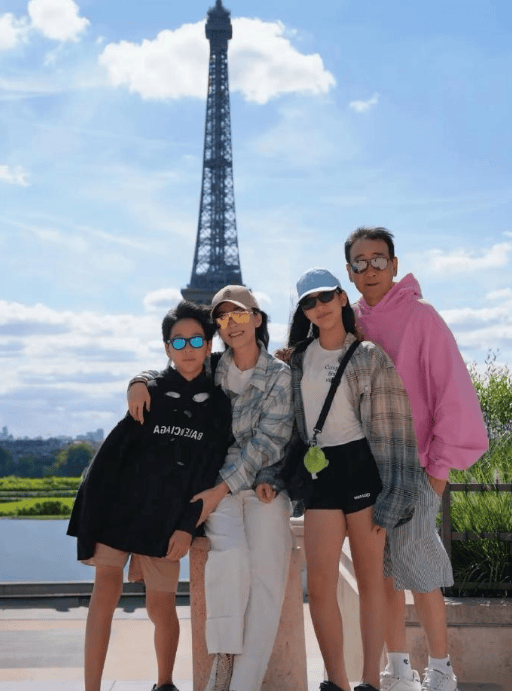 5日,48岁苗圃在社交平台晒一家四口全家福,先后打卡埃菲尔铁塔和凯旋门,这次她还难得大方晒出老公陈义红,一家四口戴墨镜合照,苗圃搂儿子,陈义红搂女儿。