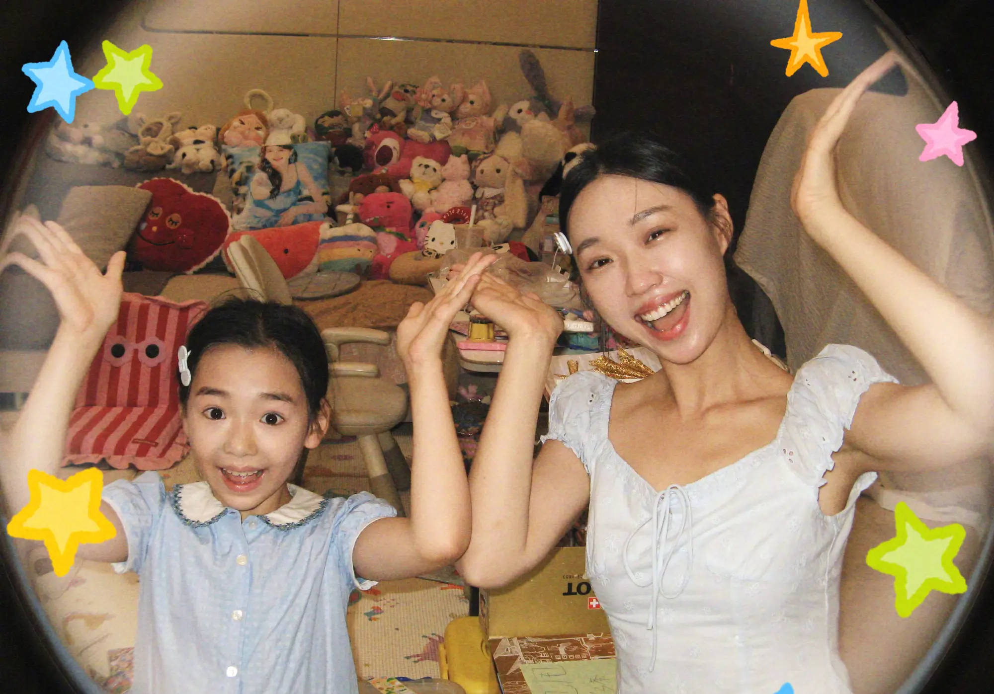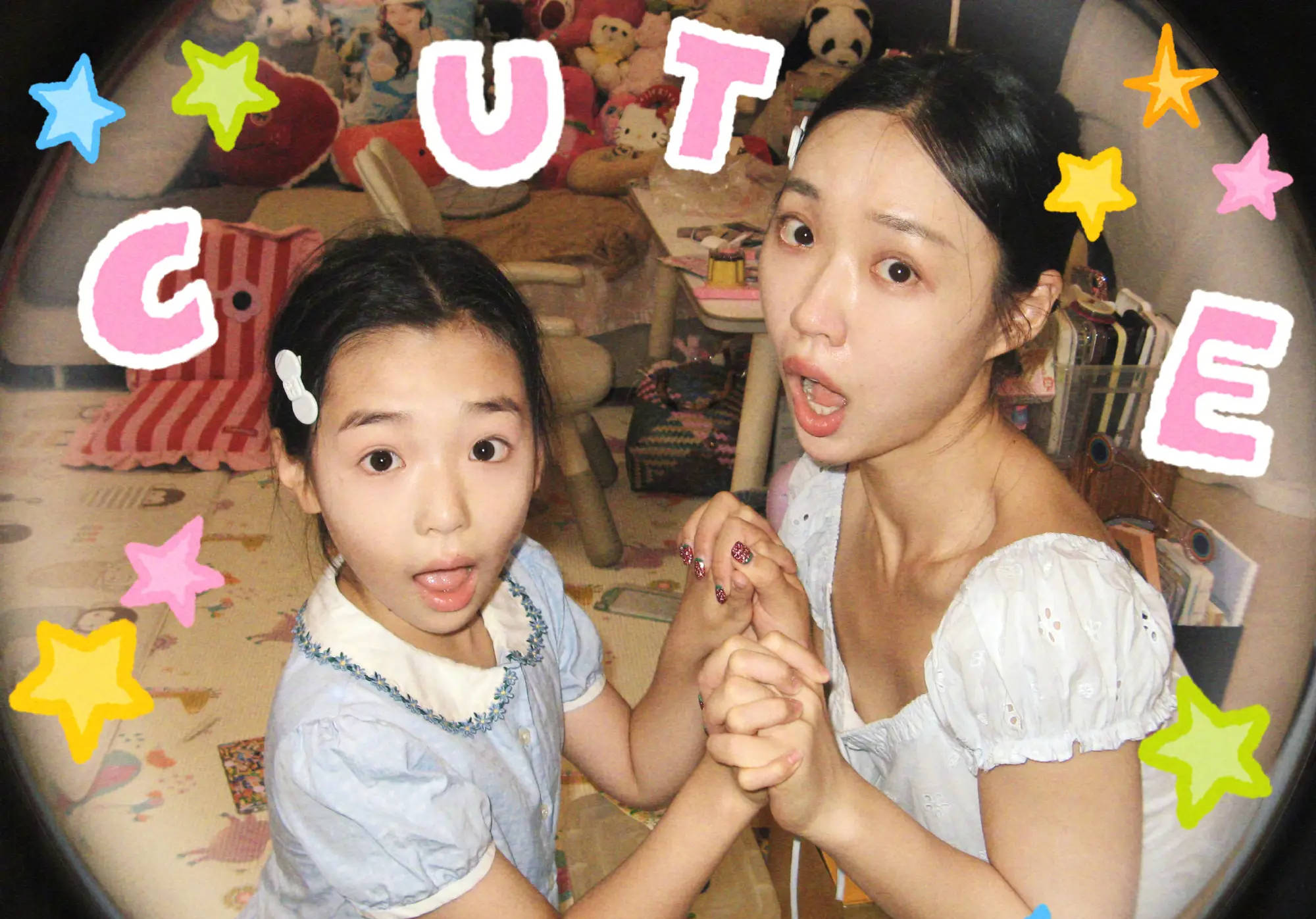 管乐和小酒窝表情搞怪。