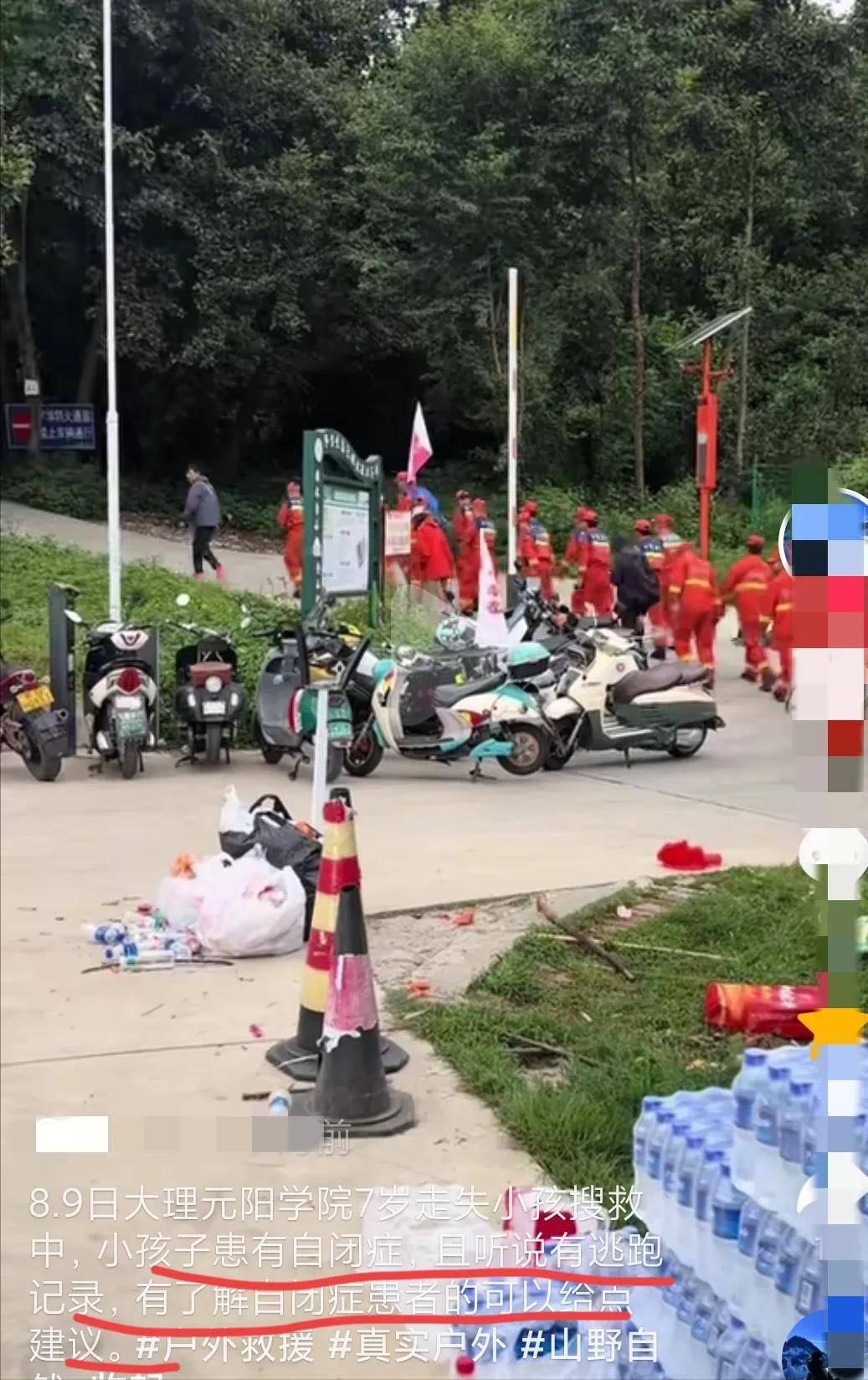孩子丢了可把所有人都急坏了,当地警方、消防队、大理蓝天救援队,能上的全上了,大理蓝天救援队那边发了通知,说8月9日下午5点半在队部集合,请队友们积极参与搜救。