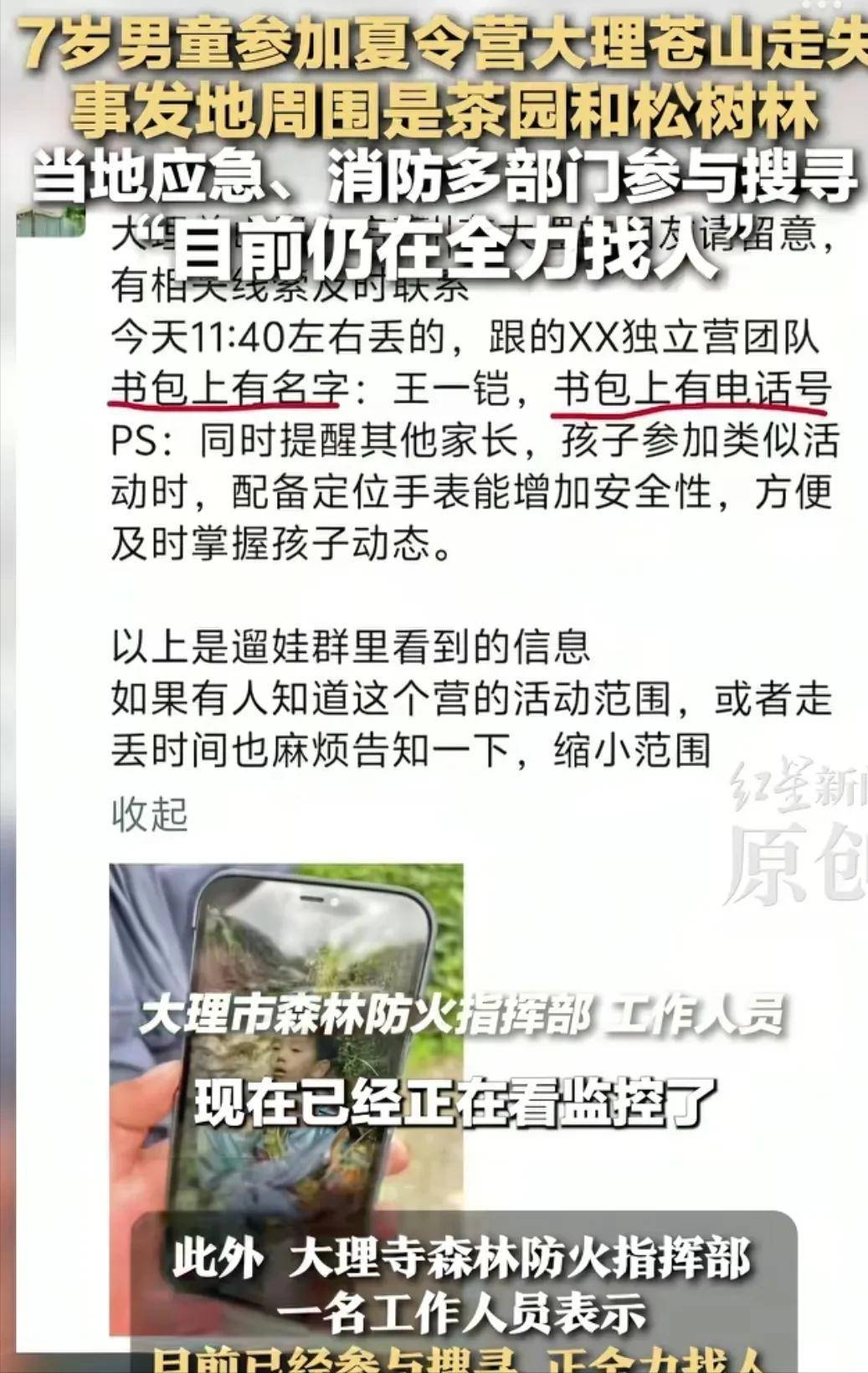 信息来源:7岁男童参加夏令营在大理苍山失踪一天一夜!今早大批志愿者上山搜救——2025-08-10 12:02·红星新闻