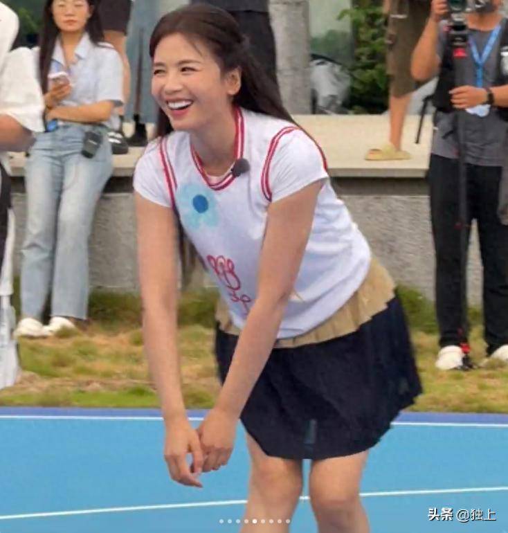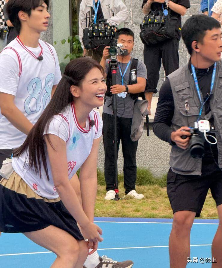 这次综艺录制地点是在闹市,路人居多,被很多人围观,因此有不少综艺录制的路透照传出,节目组设置了好多游戏环节,其中有一个环节是在广场上打网球,广场上的人多多啊,整场比赛都被围观。