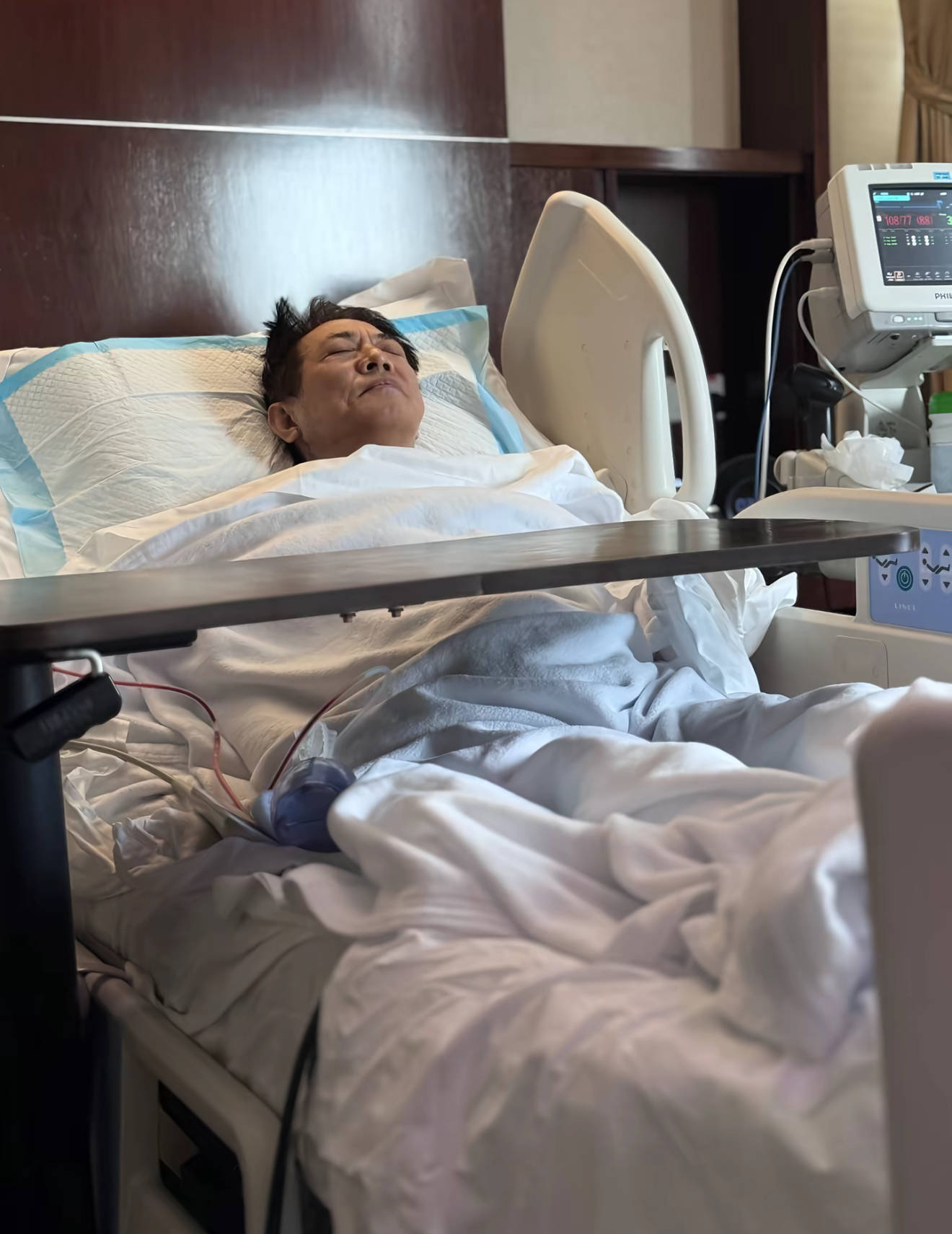 照片中的李连杰满脸憔悴,正在闭目养神,刚刚做完手术的他非常憔悴,身上依旧插着管子,看里面的液体还是红色的,不知道到底做什么用。