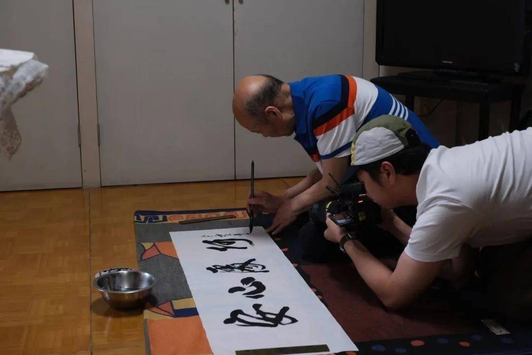 80岁的日本遗孤木村成彦如今是一名书法家