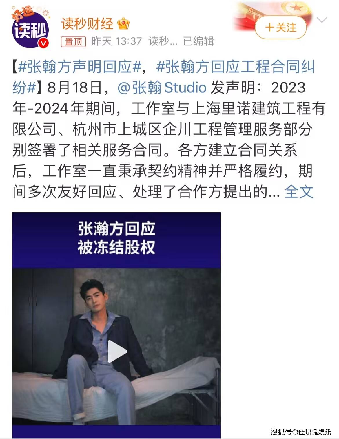 而这次张翰股权被冻结一事,随着他的一则声明就没有了后续。