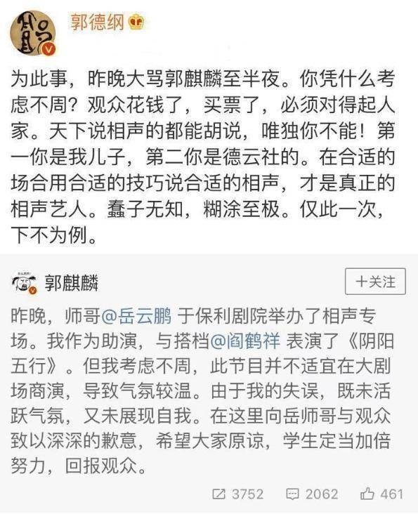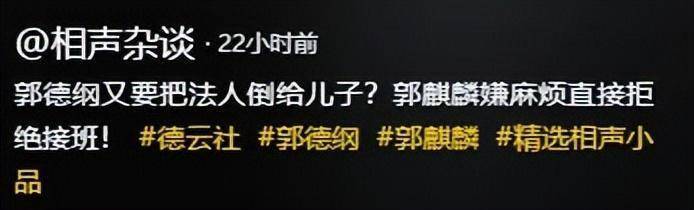 说到底,德云社的接班人之争,从来不是郭麒麟和郭汾阳的“战争”,而是老郭两口子在斗法呢!
