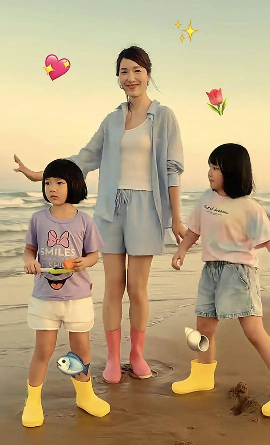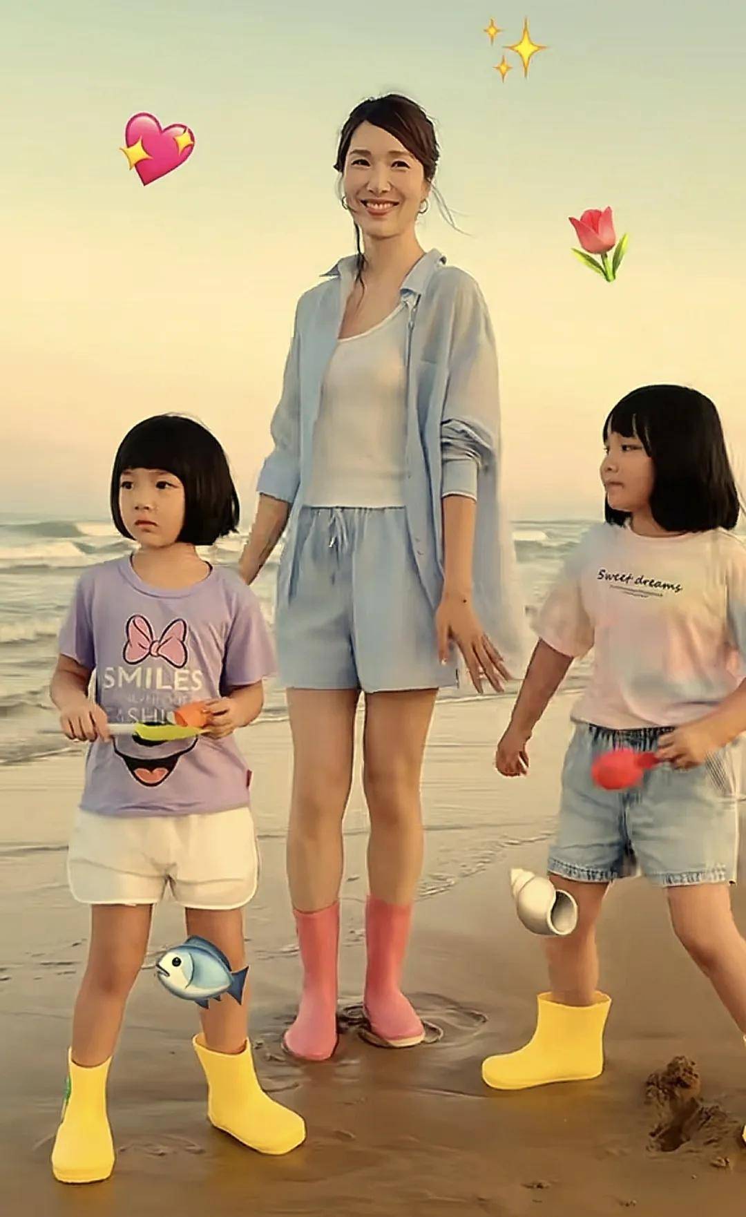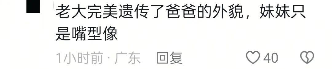 虽然王祖蓝的基因比较强大,尤其是嘴巴,但好在两个女儿的身高没有遗传到王祖蓝。两个女儿,一个长得像爸爸,一个长得像妈妈,也挺好的。一对姐妹花,虽然一个像爸,一个像妈,但整体看起来都挺漂亮的。
