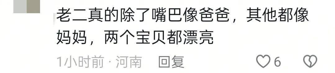 大女儿身体长得也挺好的,有点小肉肉的十分可爱。老大的五官也特别的像王祖蓝,父女俩简直就是一模一样的,只能说王祖蓝的基因太强大了,尤其是嘴巴。老二则是除了嘴巴像王祖蓝,其他五官长得像妈妈李亚男,性格看起来也比较安静。