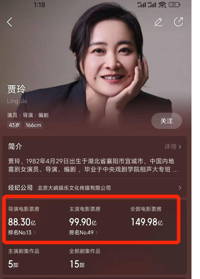 她导演的电影主要有两部,一部是《你好李焕英》,一部是电影《热辣滚烫》,都是稳定在30亿以上,虽然争议很大,但在春节档的卖相一直都不错。