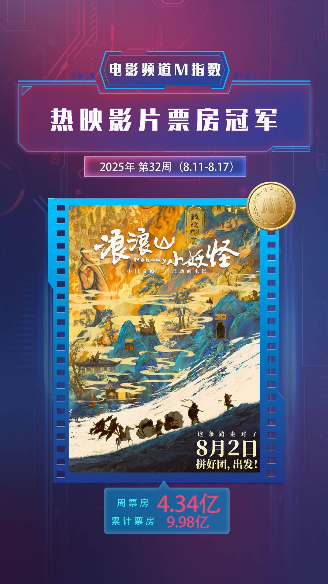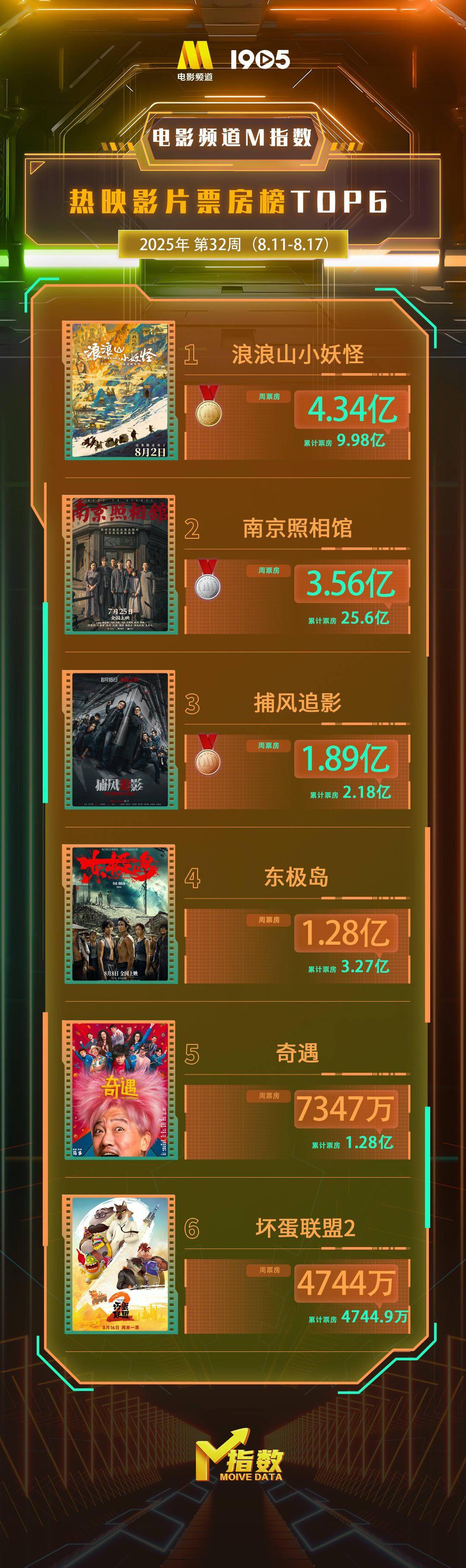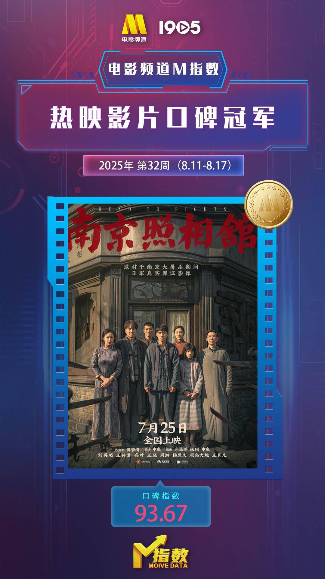 1905电影网讯 “电影频道M指数”2025年第32周(8月11日-8月17日)结果发布。