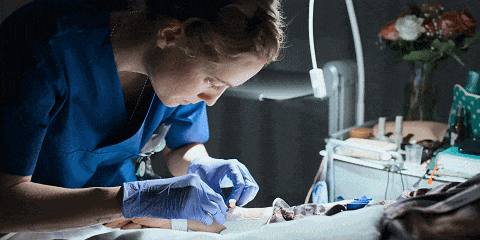 女主打针操作很专业,而且每次操作后都会进行手部消毒。