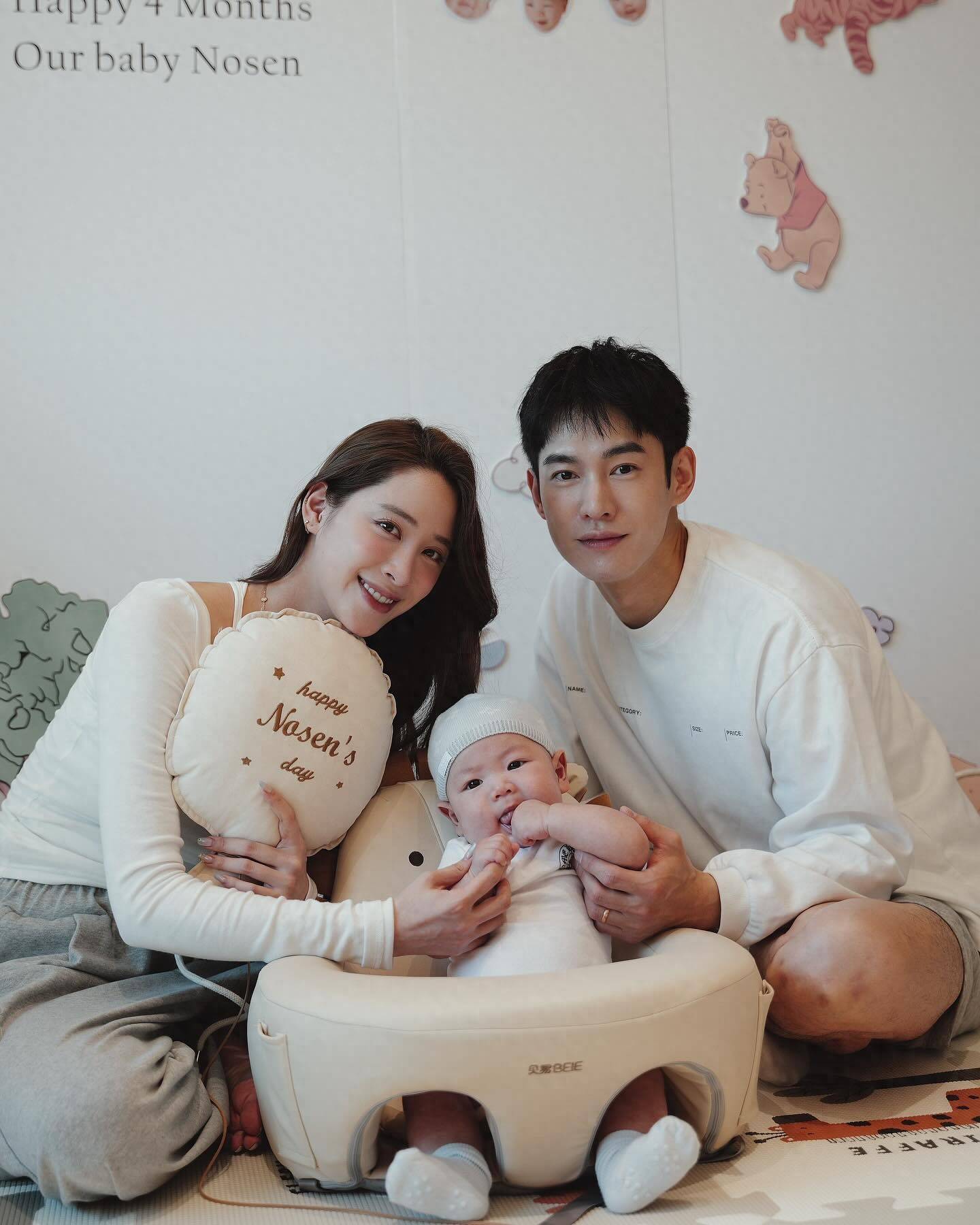 欧阳妮妮去年与张书豪结婚生子,迎来可爱的儿子睦睦,一家三口温馨美满。