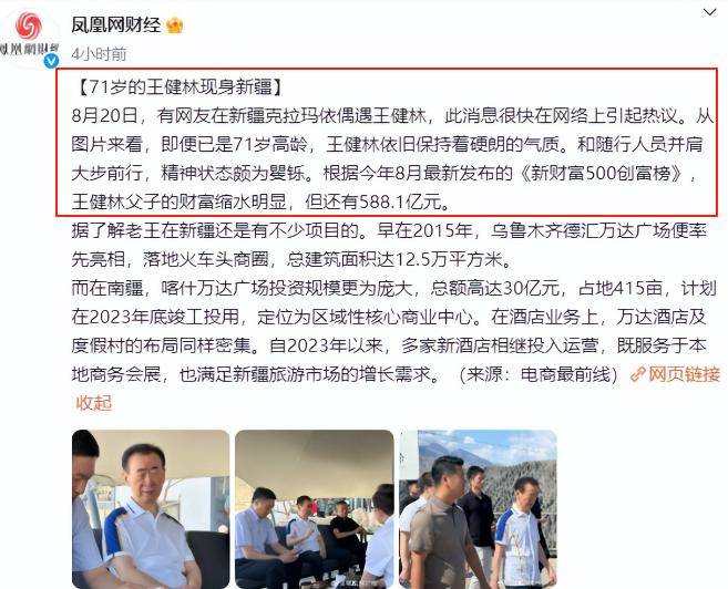 3天前,71岁的王健林现身新疆,带着七八个人考察项目,感觉一下子苍老了好多。