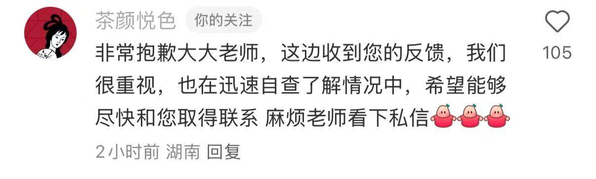 记者就此事询问茶颜悦色官方淘宝店客服,客服表示已收到相关反馈,“我们也很重视,正在向上反馈中,非常抱歉给您带来不好的体验。”