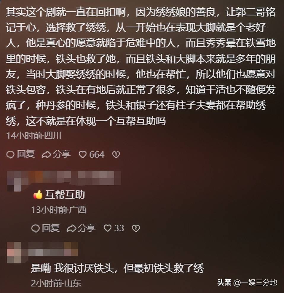 不论是前期帮助铁头家,还是大脚给了露露4块银元救小虎,都让观众们气不打一处来。