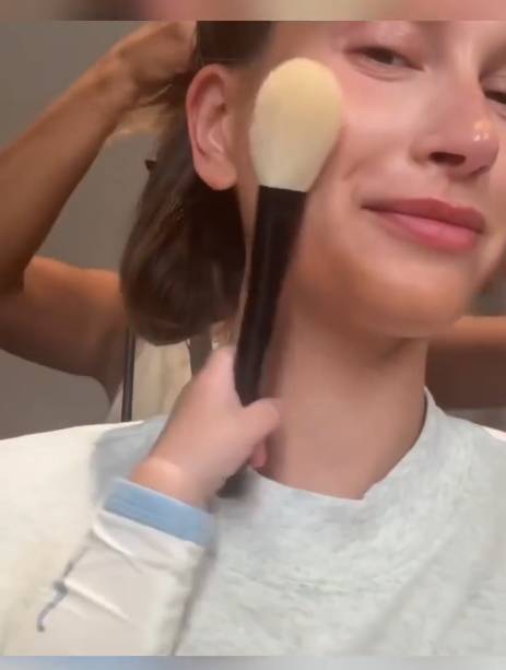 儿子杰克正在为妈妈化妆,好有爱的画面。