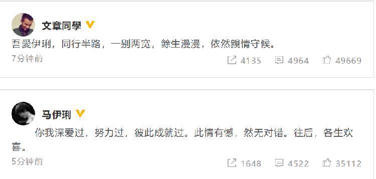 在这件事情爆出的几天后,等来了文章和马伊琍的回应。
